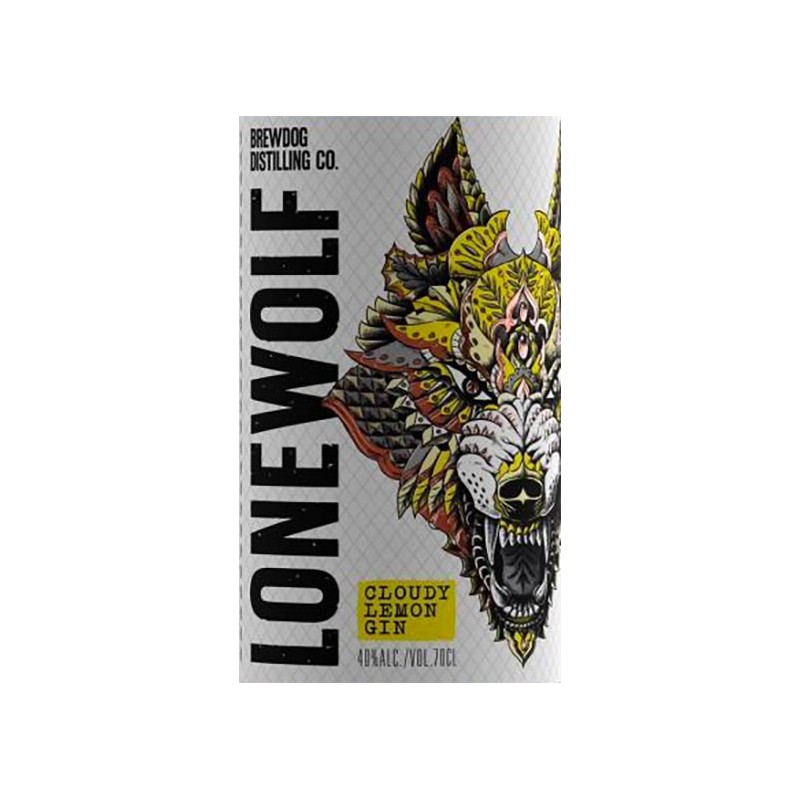 Brewdog Distilling a choisi cette bouteille en verre dépoli car Lonewolf Cloudy Lemon est naturellement trouble avec la présence d'huile essentielle et sa couleur peut varier d'une cuvée à une autre.