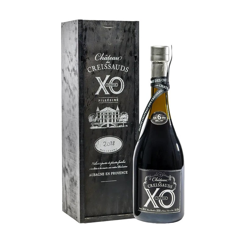 Cette édition limitée “Pastis Château des Creissauds XO 6 ans Millésime 2018” (plantes récoltées en 2018) a d’abord été vieillie en foudre pendant 1 année, puis en fût de Cognac pendant 4 ans, avant de bénéficier d’une année supplémentaire en ex-fût d’Ambre Noir ayant auparavant contenu du cacao.
