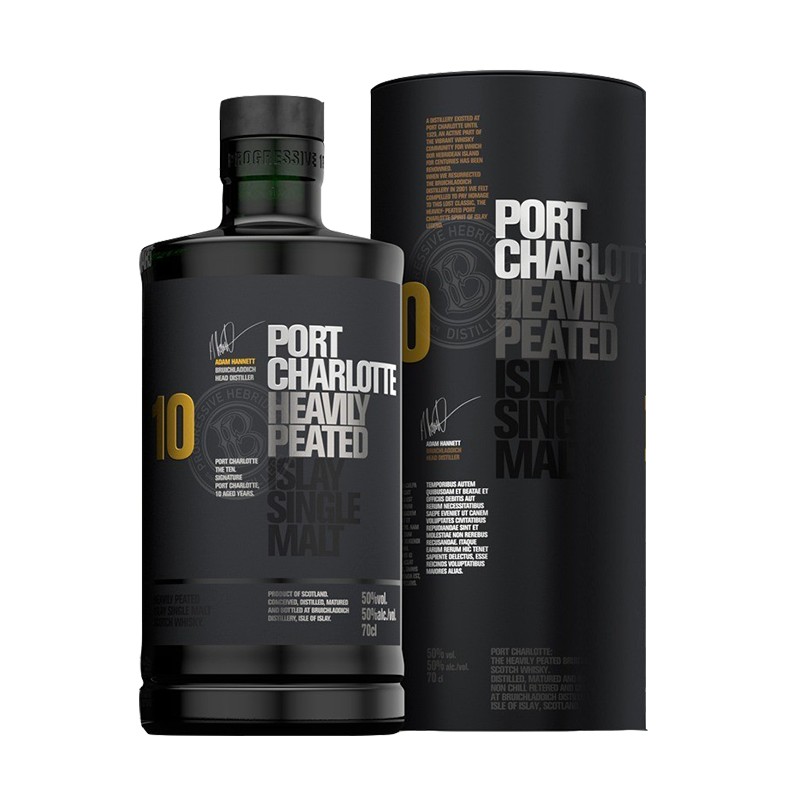 Port Charlotte réinvente sa gamme et son packaging en 2018 pour laisser place à ce 10 ans d’âge qui vient remplacer le « Scottish Barley » de la distillerie. Toujours fabriqué à partir de 100% d’orge écossaise du comté d’Inverness et d’eau de source provenant d’Islay, ce single malt ultra tourbé (40 ppm) est vieilli à 75% dans des fûts de whiskey américain de premier remplissage et à 25% en fûts de vin français de second remplissage. Le nouveau packaging de la gamme Port Charlotte en bouteilles de verre de couleur verte est un clin d’œil au design des bouteilles de whiskies tourbés produits par d’autres distilleries d’Islay. Toutefois, la distillerie tient à ce que son single malt soit imaginé, distillé, vieilli et embouteillé à Islay.