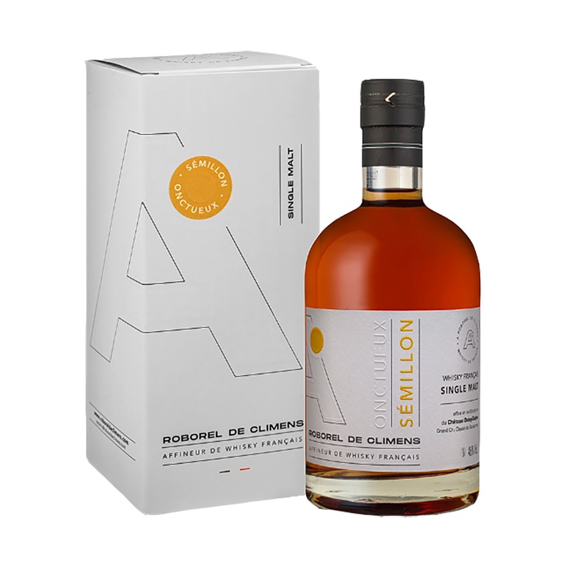 Élaboré par double maturation, ce Single Malt a d’abord subi une première maturation en fût de chêne français (20% neufs + 80% roux) et ensuite une deuxième maturation par un affinage de 6 à 12 mois en ex-fûts de vin blanc liquoreux. Les barriques de finition qui ont contenu exclusivement du Sémillon sont issues du Château Doisy-Daëne, Grand cru classé de Sauternes-Barsac.