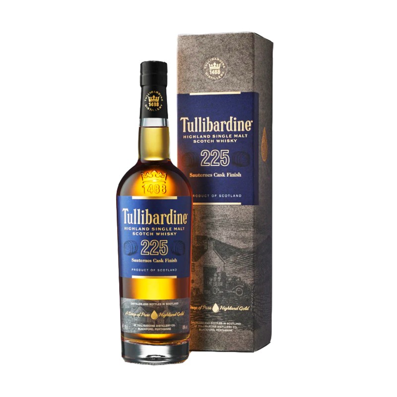 Le Tullibardine 225 Finition Sauternes Cask est un whisky écossais single malt produit par la distillerie Tullibardine, située dans les Highlands. Ce whisky se distingue par une finition en fût de Sauternes, un vin liquoreux français renommé, qui lui apporte des caractéristiques uniques.