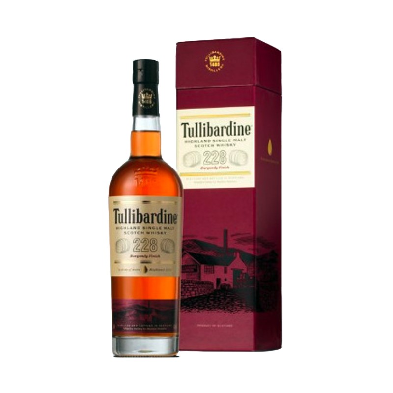 Le Tullibardine 228 Burgundy Cask Finish est un whisky single malt écossais produit par la distillerie Tullibardine, située dans les Highlands. Ce whisky se distingue par sa finition en fûts de vin rouge de Bourgogne (228 litres, d'où son nom), ce qui lui confère un caractère unique et riche.